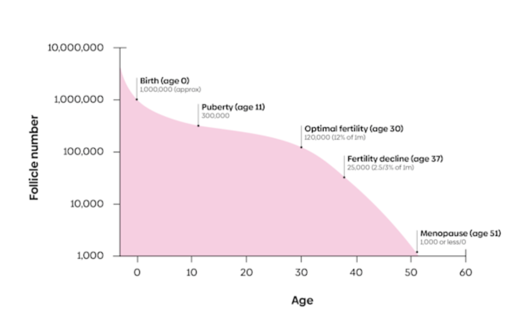 - The number of follicles is fixed at birth and begins a steady decline with aging